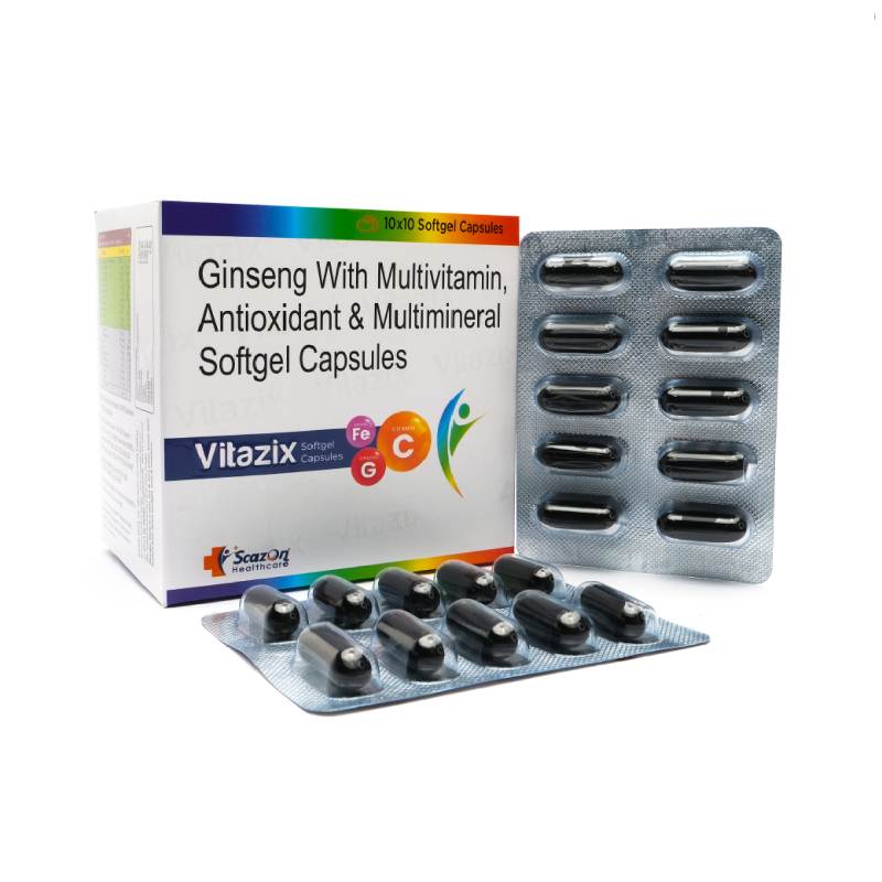Ginseng With Multivitamin, Antioxidant, and Multimineral Capsules come with the branding “Vitazix” and are used to increase energy and fight fatigue and are suitable for individuals with high activity. It boosts one’s ability to think, helps in concentration and also aids in memory, and boosts the immune system to prevent illnesses. These capsules help to also support antioxidant activity which enhances the shield of cells against damage through free radicals.